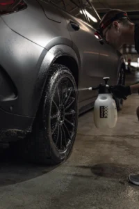 ręczne mycie karoserii z aplikacją Quick Detailera, który nabłyszcza lakier i tworzy warstwę ochronną zapewniającą 14-21 dni ochrony. Zawiera również mycie felg, nadkoli oraz aplikację dressingu na opony.