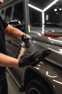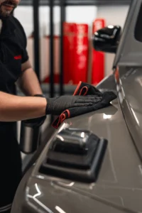 trwała ochrona lakieru poprzez aplikację nanopowłoki ceramicznej, która zwiększa odporność na zarysowania, chemię drogową, promieniowanie UV i zanieczyszczenia. Tworzy hydrofobową warstwę, ułatwiającą mycie auta i podkreślającą głębię koloru. • Trwałość: od 12 miesięcy do 5 lat w zależności od rodzaju powłoki.